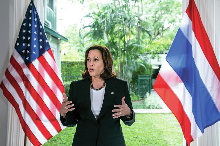 MANILA, Philippines — Vice President Kamala Harris will underscore America’s commitment to defending treaty ally the Philippines with a visit that started Sunday and involves flying to an island province facing the disputed South China Sea, where Washington has accused China of bullying smaller claimant nations.