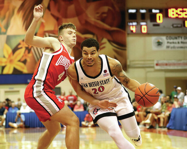 LAHAINA, Maui (AP) — Matt Bradley scored 18 points before fouling out in the final minutes and helped No. 17 San Diego State rally from a slow start to beat Ohio State 88-77 Monday night in the first round of the Maui Invitational.