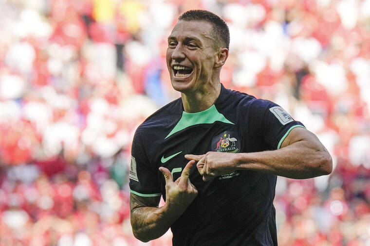 AL WAKRAH, Qatar — Mitchell Duke celebrated scoring Australia’s winning goal by forming a “J” with his fingers in a tribute to his son Jaxson, who was in the stands.