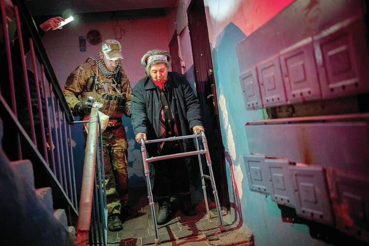 KHERSON, Ukraine — Russian forces struck eastern and southern Ukraine early Sunday as utility crews scrambled to restore power, water and heating with the onset of snow and frigid temperatures, while civilians continued to leave the southern city of Kherson because of the devastation wreaked by recent attacks and their fears of more ahead.