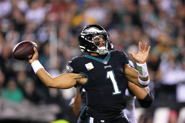 In the second half, he hit A.J. Brown for a 6-yard TD pass and a 34-20 lead that just added to his staggering numbers on one of the great nights ever for an Eagles QB. Hurts topped Michael Vick’s 130 yards rushing set in December 2010 against the New York Giants.