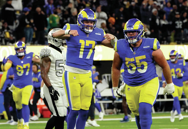 Los Angeles trailed 16-3 after Daniel Carlson’s third field goal with 12:20 to play, but Mayfield coolly engineered a 75-yard drive. Cam Akers made a short TD run with 3:19 left, one play after he fought for a first down at the Vegas 1 on a gritty fourth-down catch.