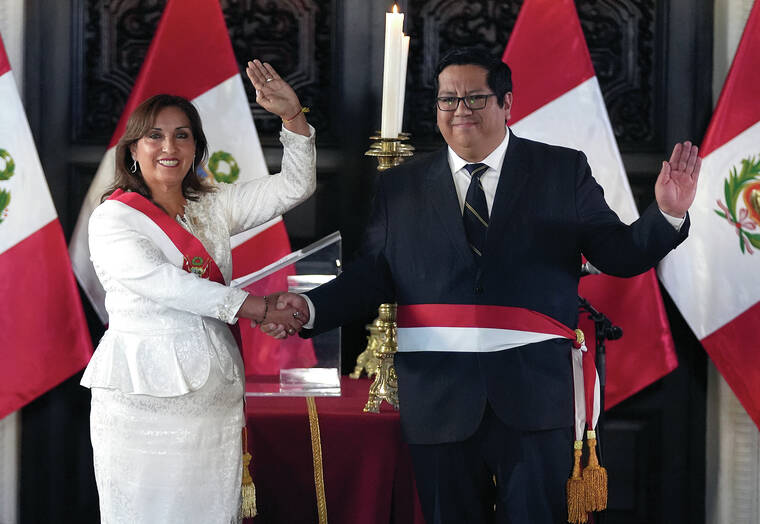 LIMA, Peru (AP) — Peru’s newest president, Dina Boluarte, swore in her Cabinet on Saturday just three days after becoming the country’s first female head of state and asked each minister to pledge not to be corrupt while in office.