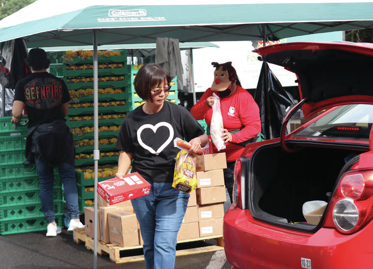 The Hawaii Island Food Basket held an Ohana Food Drop last Friday in Pahoa. It was the third of four food giveaways scheduled recently by The Food Basket to coincide with the holiday season.