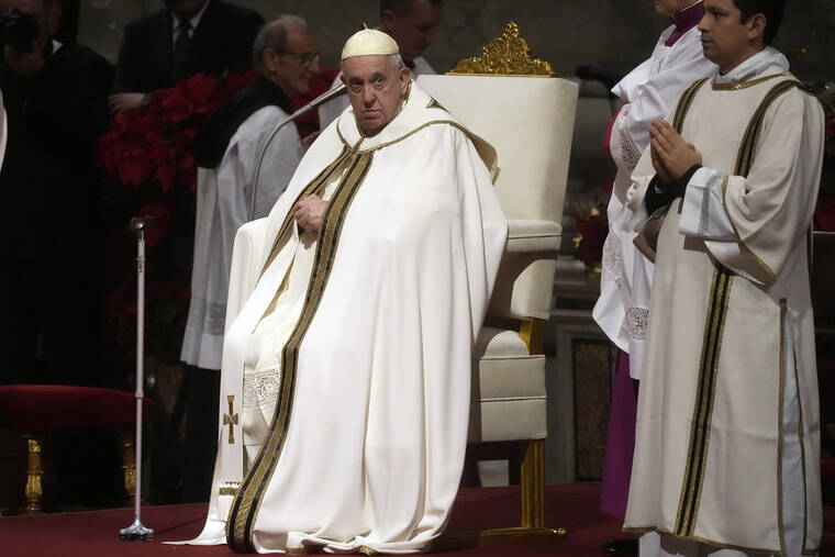 VATICAN CITY — Recalling Jesus’ birth in a stable, Pope Francis rebuked those “ravenous” for wealth and power at the expense of the vulnerable, including children, in a Christmas Eve homily decrying war, poverty and greedy consumerism.
