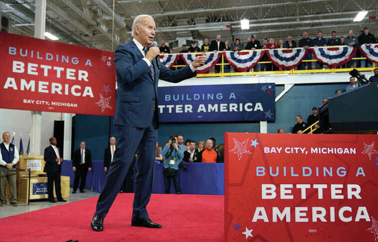 As he nears the halfway mark on his first term, Biden is pointing to legacy-defining achievements on climate change, domestic manufacturing and progress on the COVID-19 pandemic — all accomplished with razor-thin majorities on Capitol Hill and rather dim views from the public.