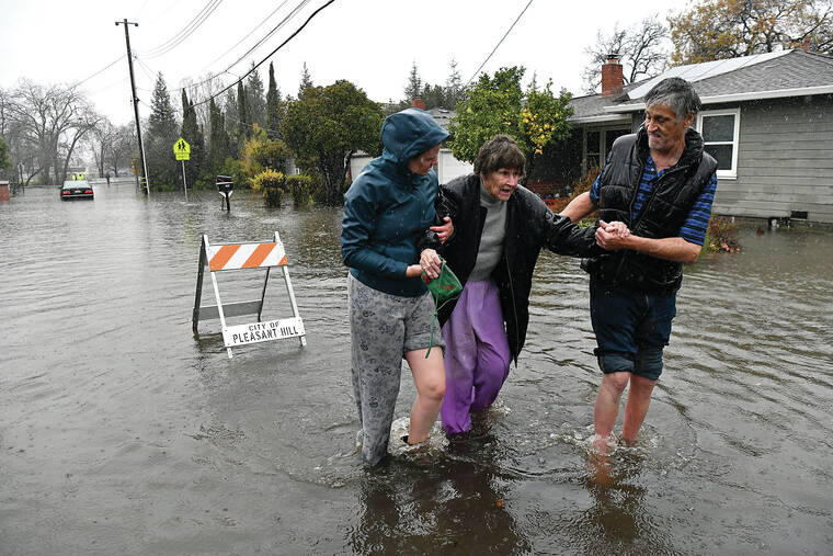SACRAMENTO, Calif. (AP) — Residents of a Northern California community were ordered to evacuate ahead of imminent flooding, and evacuation warnings were in place elsewhere in rural parts of the region on New Year’s Day after a powerful storm brought drenching rain or heavy snowfall to much of the state, breaching levees, snarling traffic and closing major highways.