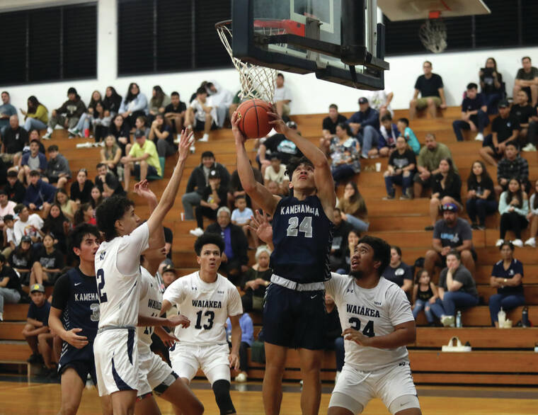 The Kamehameha boys basketball team defeated Waiakea 40-34 in a game in Hilo on Saturday night. The KS-Hawaii Warriors are 6-1 in BIIF play this season and will be playing Honokaa at home on Thursday night. The Waiakea Warriors are 3-3 in BIIF play and will be playing Kealakehe at home today.