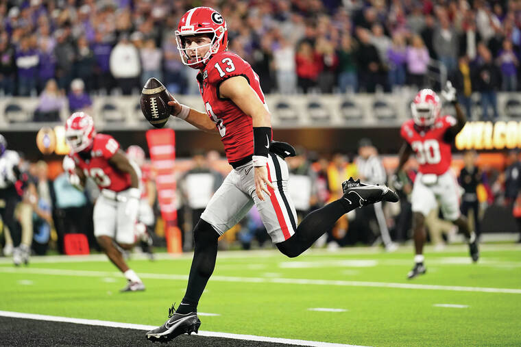 Versatile tight end Brock Bowers had seven catches for 152 yards. Receiver Ladd McConkey caught two TDs. Georgia ran for 254 yards with seven players gaining at least 10.