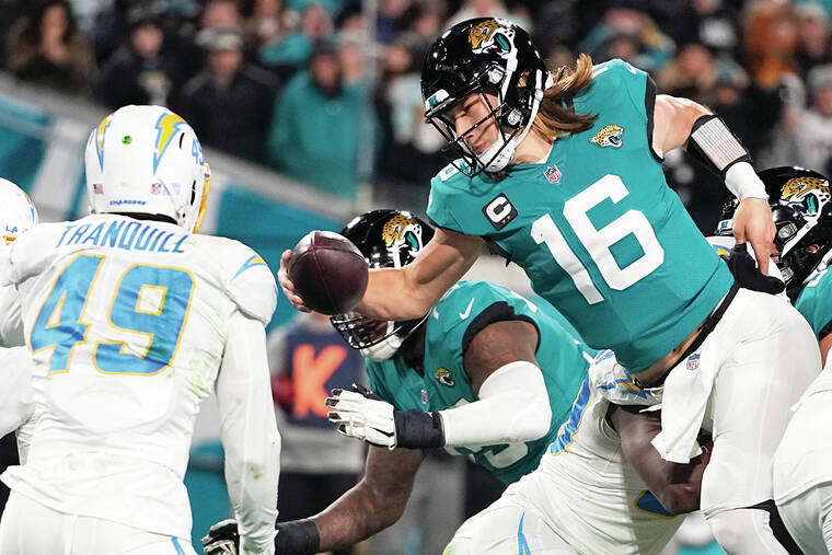 The No. 1 overall pick in the 2021 draft followed four interceptions with four touchdown passes — one of the most improbable turnarounds in NFL postseason history — and rallied the Jacksonville Jaguars to a 31-30 victory over the Los Angeles Chargers on Saturday night.