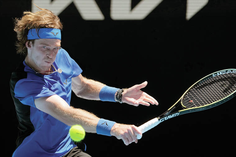 MELBOURNE, Australia (AP) — Andrey Rublev beat wild-card entry Dominic Thiem 6-3, 6-4, 6-2 on Tuesday to advance to the second round of the Australian Open.