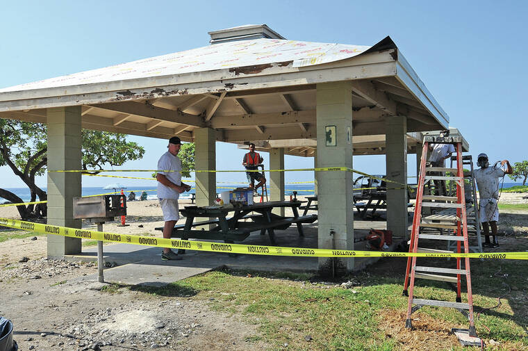 The beach pavilions at Old Kona Airport Park are getting a facelift thanks to materials and labor being completely donated by area businesses. (Laura Ruminski/West Hawaii Today)