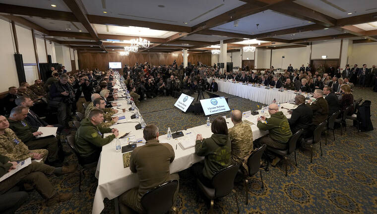 The defense leaders heard an impassioned plea for more military aid from Ukrainian President Volodymyr Zelenskyy. Speaking via video link, he told the gathering that “terror does not allow for discussion.” He said “the war started by Russia does not allow delays.”