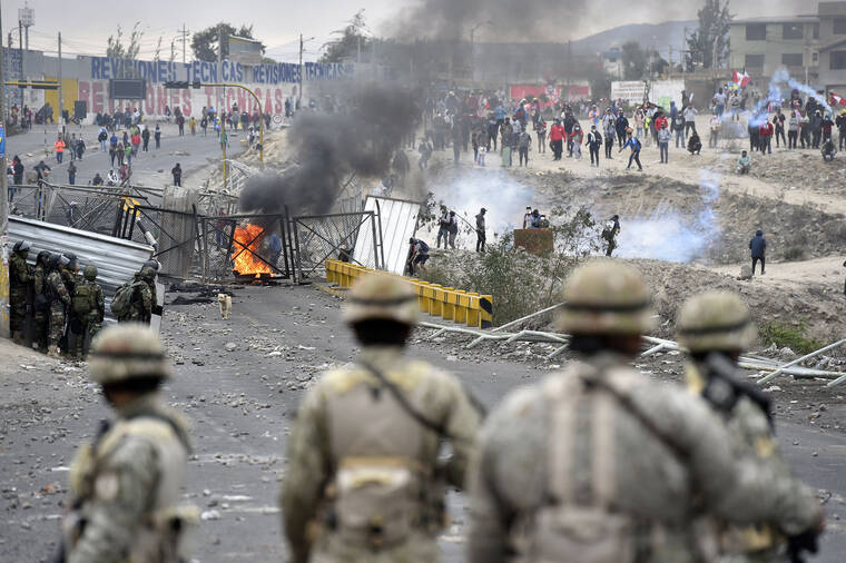 LIMA, Peru — Thousands of protesters demanding the ouster of President Dina Boluarte poured into Peru’s capital, clashing with police who fired tear gas. Many came from remote regions, where dozens have died in unrest that has gripped the country since Peru’s first leader from a rural Andean background was removed from office last month.