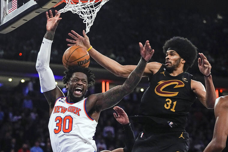 Evan Mobley’s basket tied it with 2 1/2 minutes to play before Randle answered with his 3 on the other end. Cleveland had two chances to tie or cut it to one, but Mitchell was blocked first by Barrett and then by Isaiah Hartenstein on the next possession.