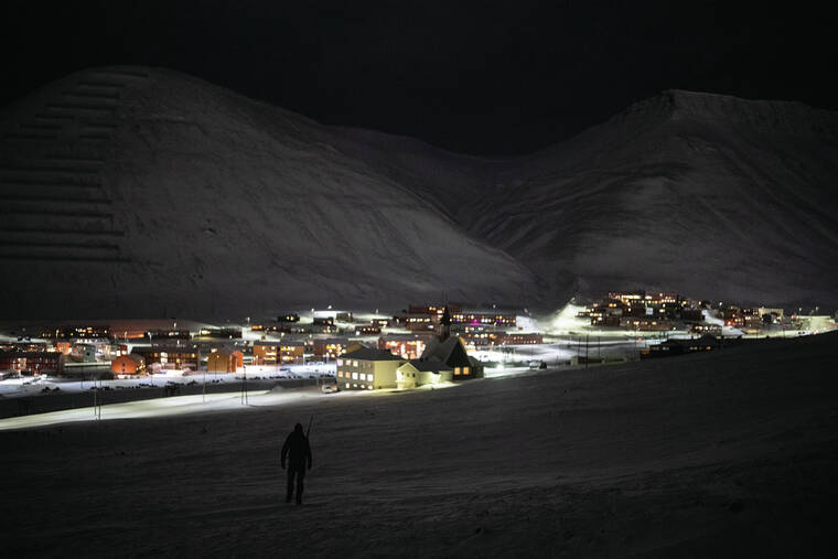 LONGYEARBYEN, Norway — The warm glow of Svalbard Kirke’s lights gleams on the mountain slope from where the church stands over this remote Norwegian Arctic village, cloaked in the polar night’s constant darkness.