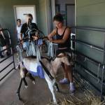 Soon after being adopted, the goat — named Janice — lost two hooves and has had two prosthetic legs since she was a kid. Lundblad and volunteers take the prosthetics off every night and put them on every morning.