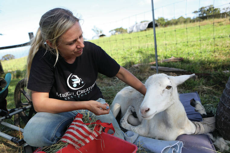 The sanctuary still has seven goats, four sheep, three cows and “a bunch of” pigs from the lava rescue.