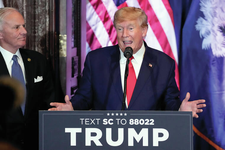 COLUMBIA, S.C. — Former President Donald Trump kicked off his 2024 White House bid with stops Saturday in New Hampshire and South Carolina, events in early-voting states marking the first campaign appearances since announcing his latest run more than two months ago.