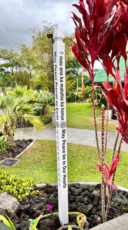 Hawaii Island peace poles have messages in English, Hawaiian, Portuguese, Japanese, Chinese and other languages.