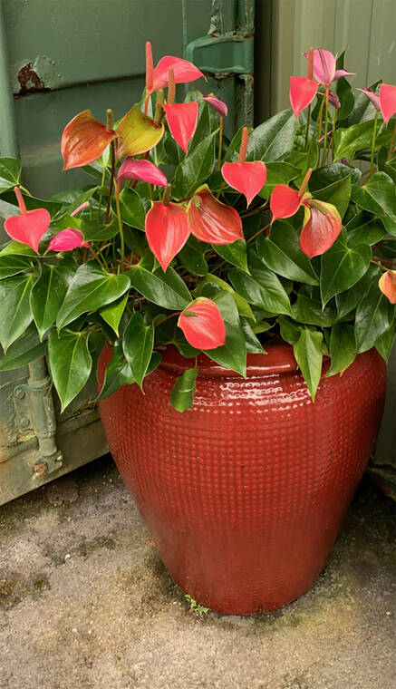 Photo courtesy of Voltaire Moise Anthurium make great Valentine's gifts, especially when given in a container made by local artists.