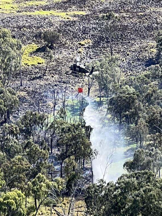 The drops totaled tens of thousands of gallons of water. Crews concentrated on reducing the fuel load in various areas near the bulldozer lines, an Army spokeswoman said.