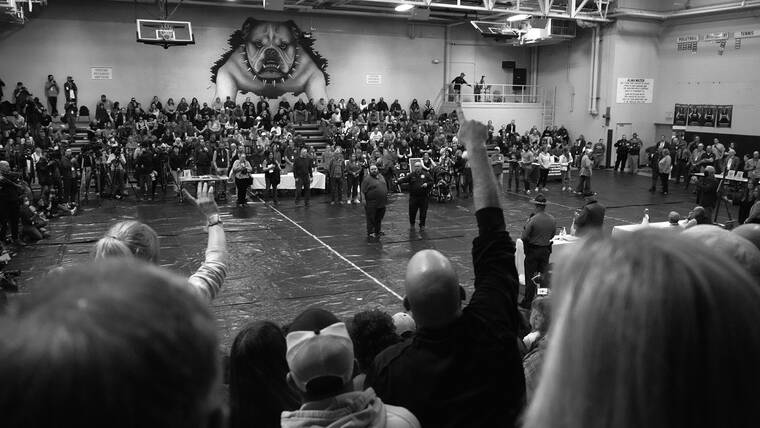 “I have three grandbabies,” said Kathy Dyke, who came with hundreds of her neighbors to a public meeting Wednesday where representatives of railroad operator Norfolk Southern were conspicuously absent. “Are they going to grow up here in five years and have cancer?”