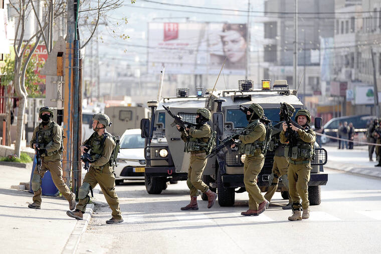Palestinian media said some 30 homes and cars were torched. Photos and video on social media showed large fires burning throughout the town of Hawara — scene of the deadly shooting earlier in the day — and lighting up the sky.