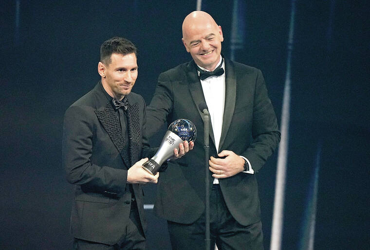PARIS (AP) — World Cup champion Lionel Messi edged Kylian Mbappé again, this time to take FIFA’s best men’s player award on Monday.