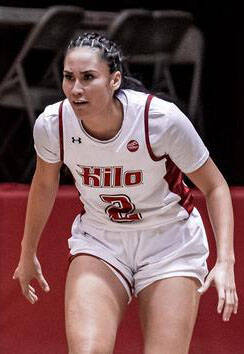 Mandi Kawaha earned a spot on the women’s All-PacWest first team for her third time. Kawaha became UH-Hilo’s all-time leading scorer this season with 1,485 points — and was second in the PacWest in points (17.8) and assists (3.9 per game). She was also the Vulcans’ most accurate free throw shooter, scoring on 84.2% of her free throws.