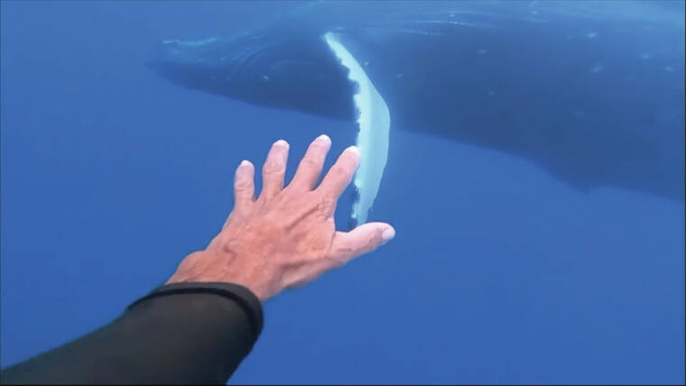 DLNR enforcement officers on Sunday received a video recording of a man snorkeling close enough to the adolescent humpback whale to almost touch the whale’s fin.