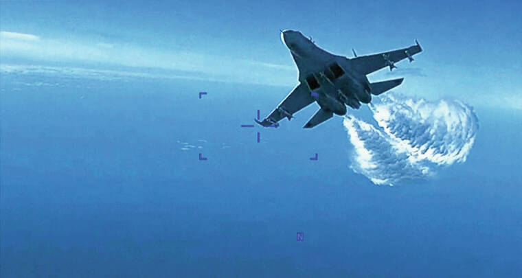 KYIV, Ukraine — The Biden administration released video Thursday of a Russian fighter jet dumping fuel on a U.S. Air Force surveillance drone as the U.S. sought to hold Russia responsible for the collision that led to the drone’s crash into the Black Sea without escalating already fraught tensions with the Kremlin.