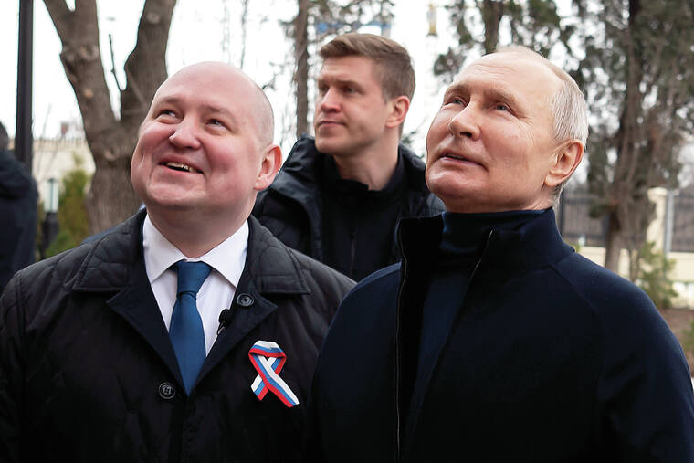KYIV, Ukraine (AP) — Russian President Vladimir Putin traveled to Crimea to mark the ninth anniversary of the Black Sea peninsula’s annexation from Ukraine on Saturday, the day after the International Criminal Court issued an arrest warrant for the Russian leader accusing him of war crimes.