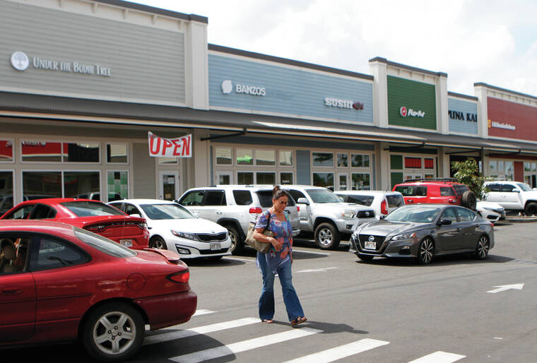 Kelsey Walling/Tribune-Herald A woman walks across the street Monday while visiting the Puna Kai Shopping Center in Pahoa.