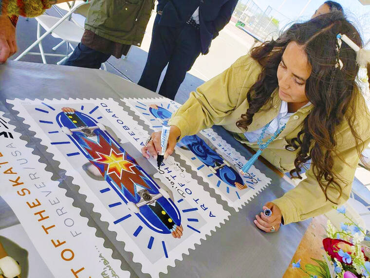 “Maybe I’ll get a letter in the mail that someone sent me with my stamp on it,” said Worl, 35, who lives in Juneau, Alaska. “I think that’s when it will really hit home with the excitement of that.”