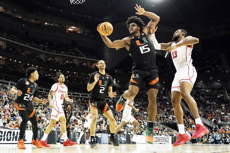 Deflated but not yet defeated, Houston closed within 49-45 on Shead’s basket with about 16 minutes left. But that’s when Sasser missed badly on a 3-point try that would would have pulled the Cougars within a point, and Jordan Miller’s right-place, right-time putback of Wong’s missed 3 at the other end put Miami in control again.