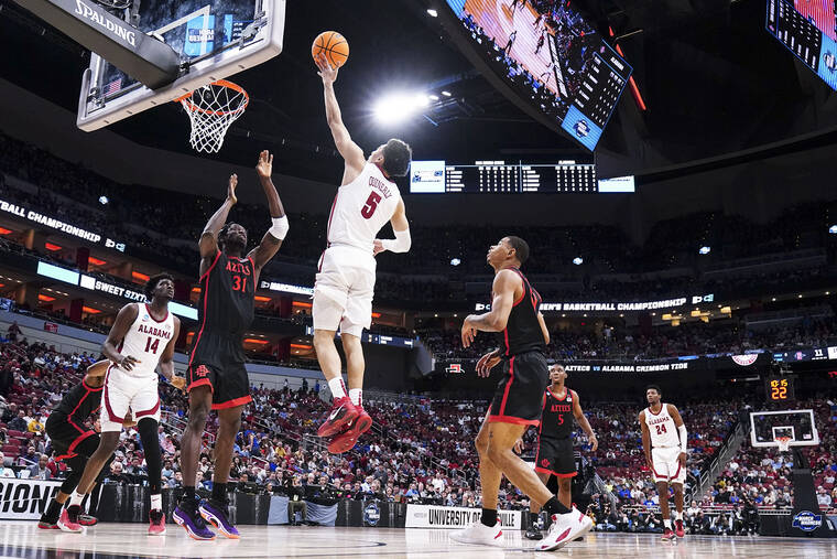 San Diego State shot just 38% overall and was outrebounded 52-48, but made clutch shots to rally when Alabama seemed in control behind a faster pace after halftime. A technical foul on Aztecs coach Brian Dutcher also seemed to spark his seasoned team, which maintained its physical play and thwarted every attempt by the Tide to rally.