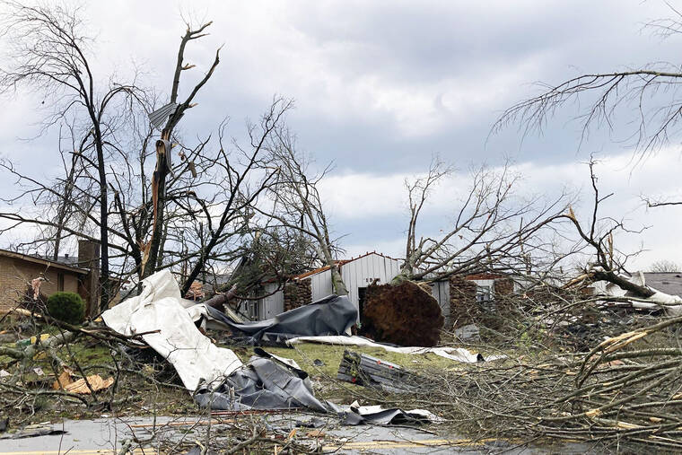 The destructive weather came as President Joe Biden toured the aftermath of a deadly tornado that struck in Mississippi a week ago and promised the government would help the area recover.
