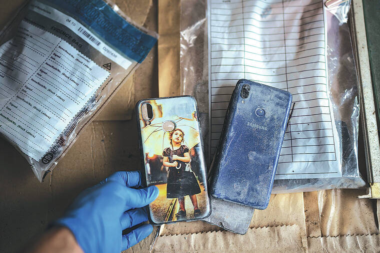 With latex gloves, the officer and an AP reporter cut open the sealed bags, pulling out the decaying evidence on the concrete floor to be documented.