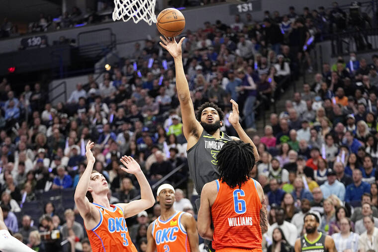MINNEAPOLIS — Karl-Anthony Towns had 28 points and 11 rebounds to lead Minnesota into the playoffs, as the Timberwolves muscled and hustled their way past the Oklahoma City Thunder 120-95 to finish the play-in tournament on Friday night.