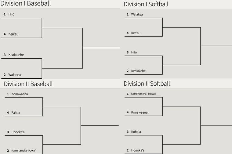 In Division I baseball action — today at 3 p.m., No.1 seed Hilo High School will host No.4 Kea‘au High School and No.2 seed Waiakea High School will host N0.3 Kealakehe High School.