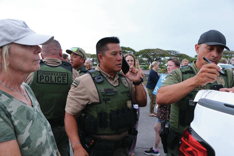 Two women were cited by DLNR officers Tuesday night during a protest involving feral cat activists (DLNR photo).