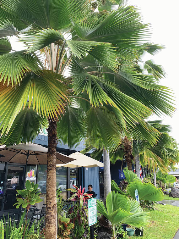 Most of the 26 Pritchardia species are native to Hawaii and should be planted in every home garden, public park and street landscape. Due to pigs and rats eating the seed, they are close to extinction. These specimen at The Club in Kailua are probably not our natives, but most likely Pritchardia pacifica from the South Pacific. They are also worth planting and are common in local plant nurseries. Another South Pacific species is Pritchardia thurstonii now often seen in Hawaiian landscapes. (courtesy photo/Voltaire Moise)