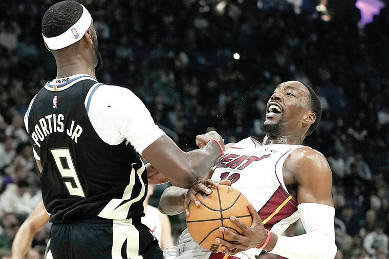 Butler scored 56 points — tying the fourth-best scoring performance ever in an NBA playoff game — and the Heat roared back from 14 points down in the final quarter to stun the Milwaukee Bucks 119-114 on Monday night to put the NBA’s top overall seed on the brink of early elimination.