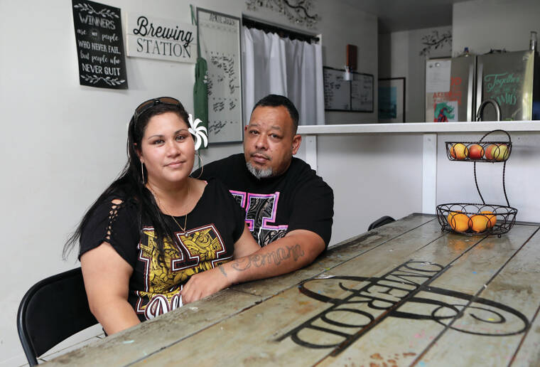 KELSEY WALLING/Tribune-Herald Foster parents Aaron and Michelle Omerod at their Hawaiian Paradise Park home on Friday.