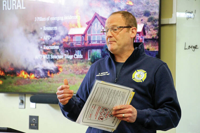 ANCHORAGE, Alaska — Research on a flat spot for air evacuations. Talk of old-style civil defense sirens to warn of fast-moving wildfires. Hundreds of urban firefighters training in wildland firefighting techniques while snow still blankets the ground.