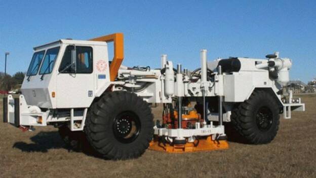 The Vibroseis vehicle that will be operating in the Kilauea summit region throughout May.
