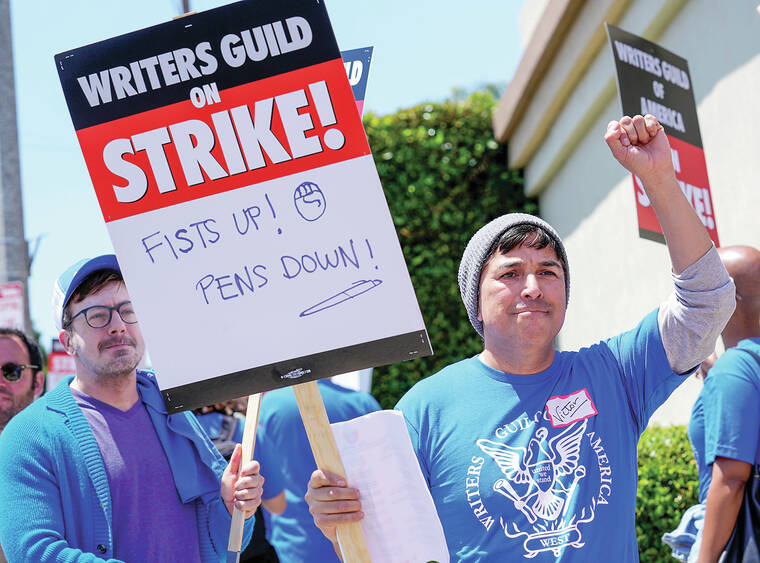 NEW YORK — The first Hollywood strike in 15 years began Tuesday as the economic pressures of the streaming era prompted unionized TV and film writers to picket for better pay outside major studios, a work stoppage that already is leading most late-night shows to air reruns.