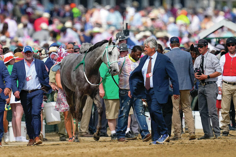 LOUISVILLE, Ky. — A raging thunderstorm that washed out activities Sunday morning at Churchill Downs symbolized the dark clouds hanging over the Triple Crown after a troubling string of horse deaths.
