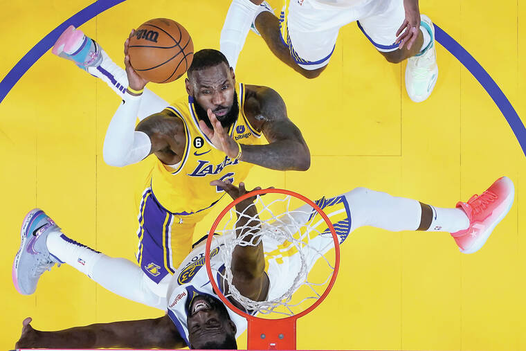 Lakers: Los Angeles was outrebounded 18-17 in the first half and 48-38 overall. … The Lakers scored 20 points off the Warriors’ 14 turnovers but committed 16 leading to 20 Warriors points. … James has never squandered a 3-1 playoff series lead. … The Lakers lost for only the six time since March 19 (17-6).